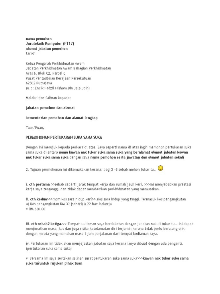 Surat Pertukaran Tempat Kerja : Contoh Surat Rasmi Yang Pertukaran Tempat Kerja Yebaran Otosection